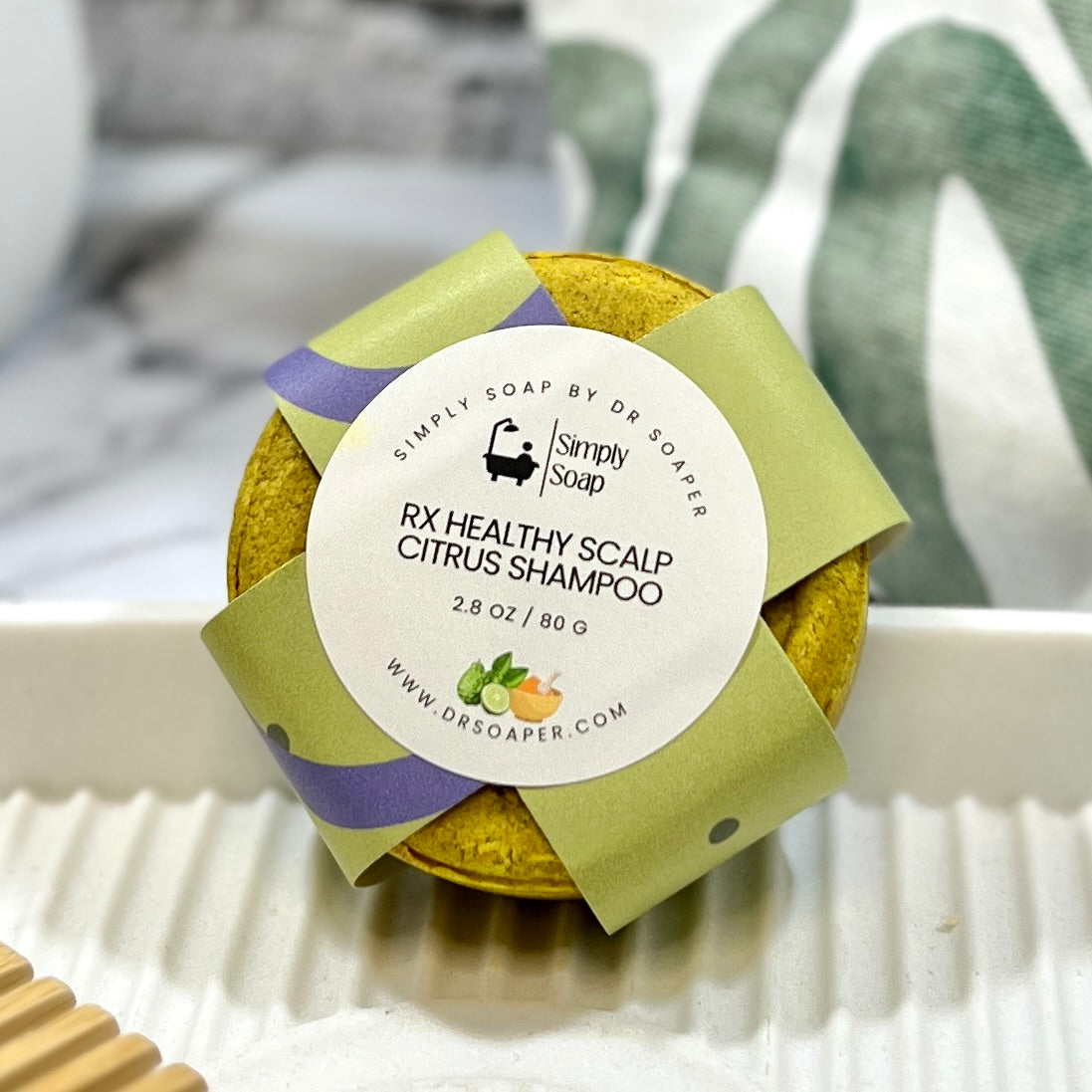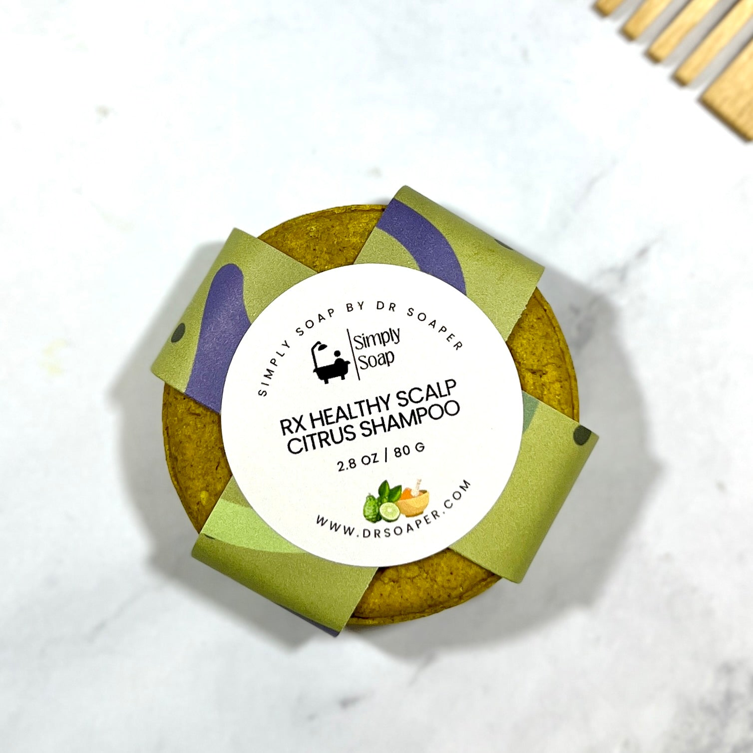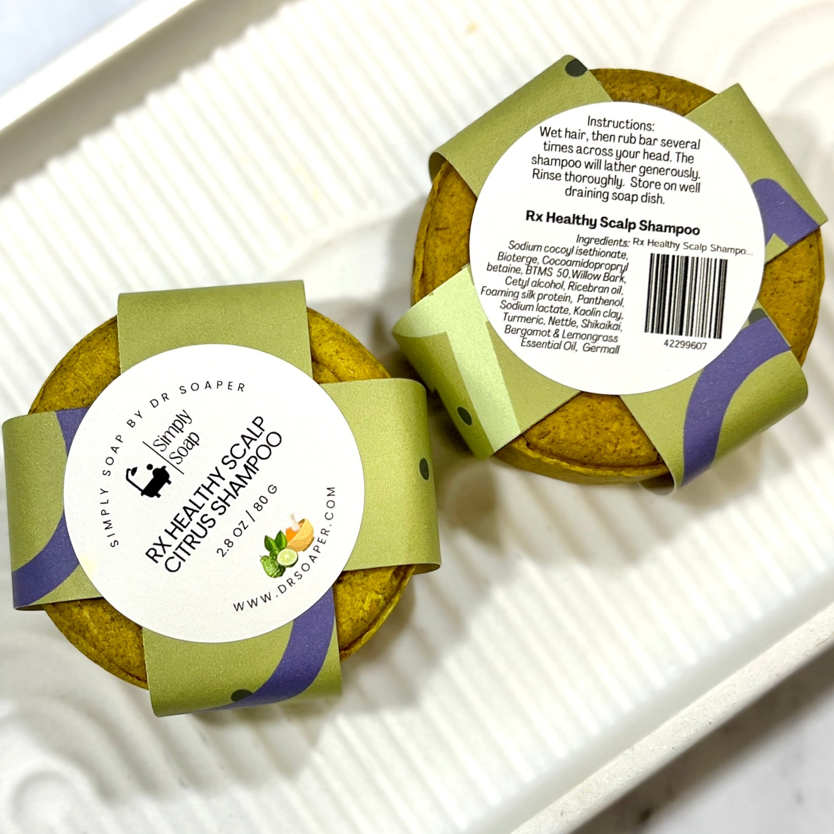 Caring for your scalp is the foundation of healthy hair. Our Rx Healthy Scalp Shampoo is a botanical solid shampoo created to support scalp balance, comfort, and strength. This bar is a complete scalp treatment for healthy hair that combines nettle, shikakai, willow bark, turmeric, bergamot, and lemongrass.